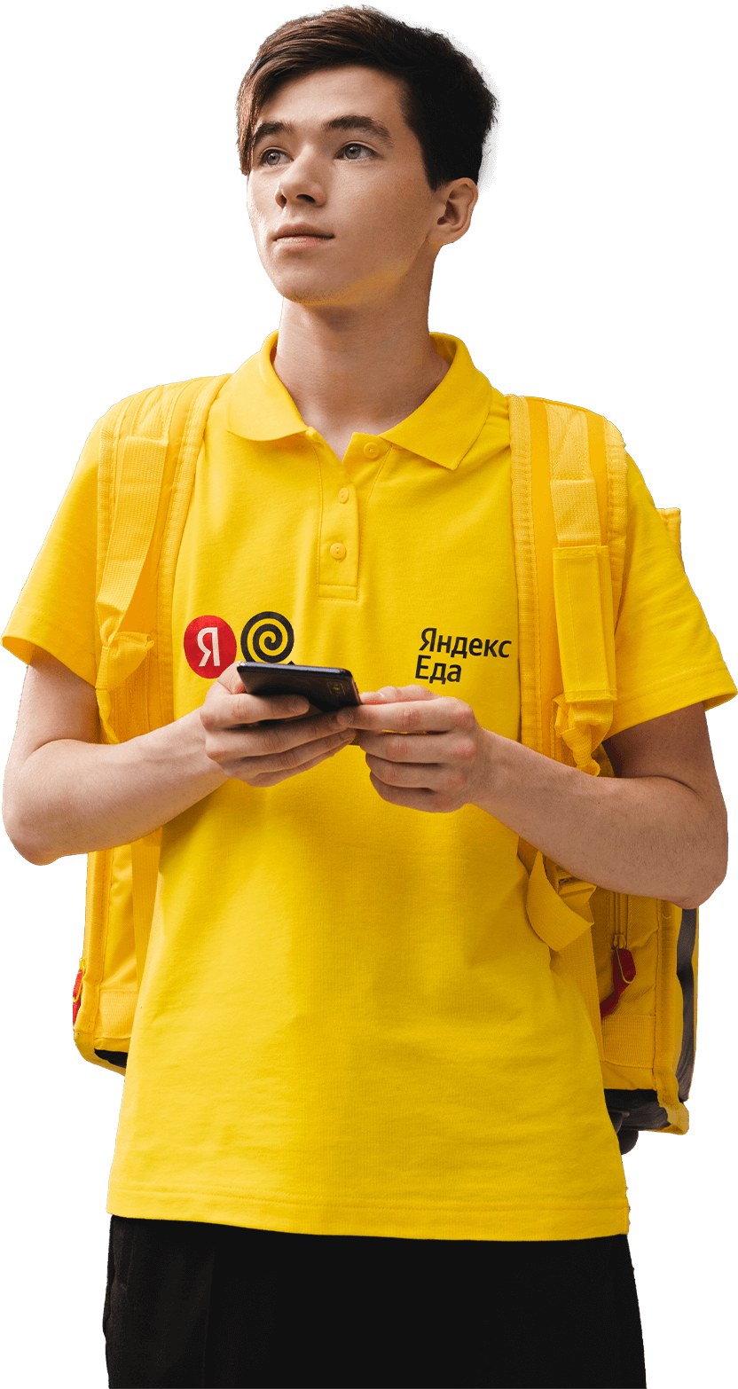* Указан средний показатель дохода по территории РФ на основании данных статистики сервиса Яндекс Еда. Чтобы узнать подробности, отправьте заявку. Сотрудничество с организациями, оказывающими услуги по доставке заказов, оформленных с помощью сервиса Яндекс Еда, а также прямое сотрудничество с курьерами-прямыми партнерами сервиса Яндекс Еда в статусе самозанятых. Условия и результаты индивидуальны и могут отличаться от указанных. Для курьеров-прямых партнеров сервиса Яндекс Еда в статусе самозанятых. Выплаты за пятницу, субботу, воскресенье производятся в понедельник. По вопросам сроков выплат курьерам, сотрудничающим с партнерами сервиса Яндекс Еда, необходимо обращаться в соответствующую организацию-партнера сервиса Яндекс Еда.